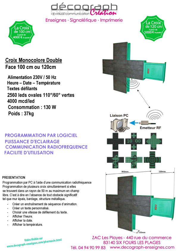 Décograph enseigne vous propose toute une gamme de Croix de pharmacie à leds ou Diodes très complète