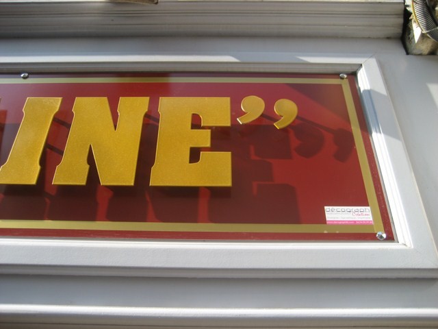 Les lettres découpées sont en Dibond laqué aspect Or , elles sont déportées de l'enseigne.