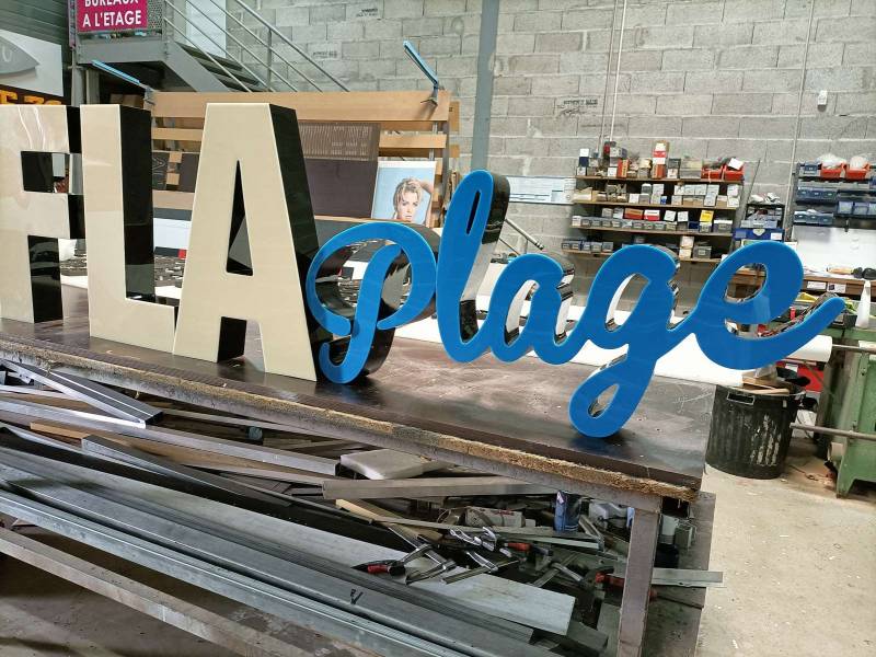 Enseigne commerciale en lettres plexiglass lumineuses au Lavandou