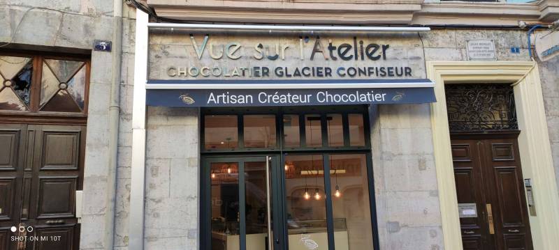L'entreprise Vue sur l'atelier, votre artisan chocolatier, glacier confiseur à Hyères dans le Var nous a fait confiance pour la création de son enseigne publicitaire et de son store.