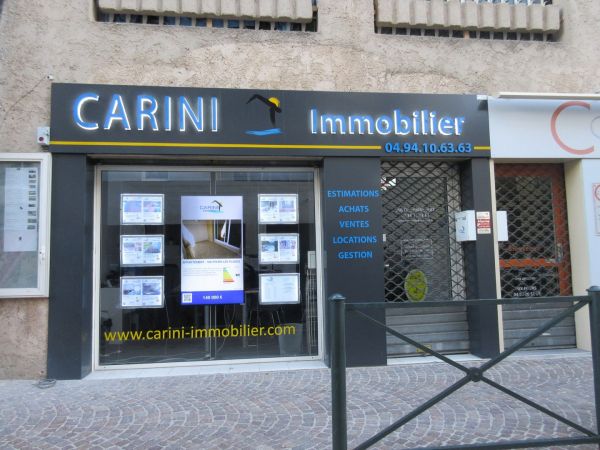 Decograph, votre enseigniste, spécialiste de la création, de la réalisation et de la pose d'enseigne et de signalétique à Six Fours et dans le Var vous présente une de ces créations pour l'agence immobilière CARINI à Six fours les Plages