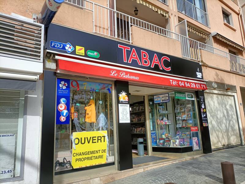 Création réalisation et pose d'une façade et de son enseigne pour un tabac à Bandol centre ville.