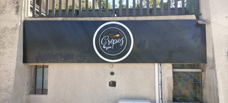Decograph a ainsi réalisé un panneau noir avec un caisson rond lumineux simple face pour l'entreprise Crêpe 4 You. Nous avons également installé pour eux deux tôles tablettes pochoirs lumineuses avec des plexis diffusants oranges et enfin nous avons réalisé et posé du lettrage PVC en relief avec rétro éclairage.