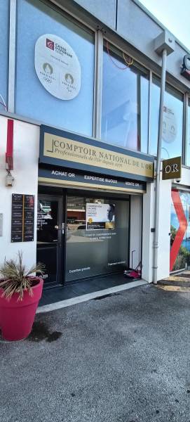 Nous avons réalisé la conception et pose de l'enseigne avec un drapeau double-face lumineux à La Ciotat pour le franchisé : Comptoir National de l'Or.