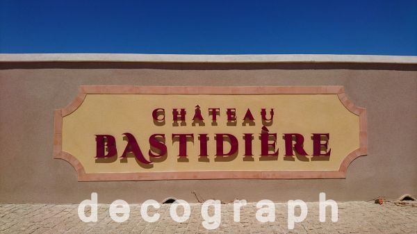 Décograph, spécialiste dans la réalisation et la création de votre signalétique intérieure ou extérieure, d'enseignes lumineuses ou non lumineuses, de covering sur véhicules et sur vitrines, de panneaux et marquage sur tous support vous présente sa réalisation de signalétique extérieure pour le Château de la Bastidière à Cuers, près de la Valette du Var.