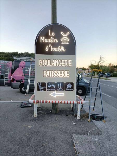 Spécialiste reconnu, Decograph met son savoir-faire au service des entreprises locales afin de valoriser leur image et renforcer leur visibilité. L’entreprise Le Moulin d’Ivaldi à Sainte-Anne d’Evenos nous a récemment accordé sa confiance pour la conception et la réalisation d’un totem lumineux sur mesure, parfaitement adapté à une structure existante.